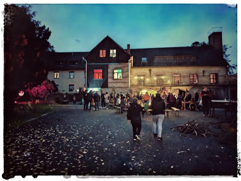 Hexen toben durch die Baude, kleinHänsel und auch Gretel gucken gar nicht lustig... Gespenster sind erwacht, es spukt aus allen feuchten Ritzen. Die Hexenbesen wollen tanzen, wir lassen sie nicht raus, wer sich traut darf aber rein: da wo früher feinekleine Zimmer waren, da düstern und schrumpeln alte Geister, drehen sich wild die leeren Flaschen, huschen Spinnen Dir entgegen, schleichen schwarze Kater um deine Beine, lautes Knarzen macht Dich neugierig....